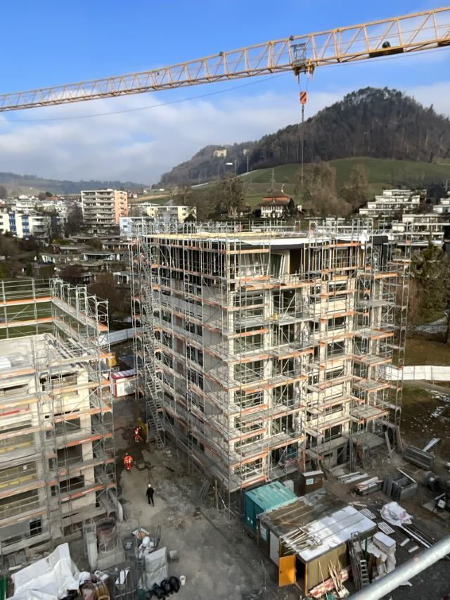 Sanierung und Aufstockung der 4 Wohnzeilen. Die bestehenden Wohnzeilen werden mit Attikawohnungen aufgestockt.